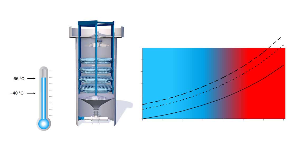 BMA's cooling crystalliser concept is based on a vertical unit with oscillating cooling tube bundles. The aim is to remove as much sucrose as possible from the mother liquor by continuing the crystallisation of crystals that have already formed. Since this is the last desugarization phase in the sugar production process, any process control errors would have an irreversible effect on the amount of sugar lost to the molasses. This is why optimized cooling crystallisation is so important.
